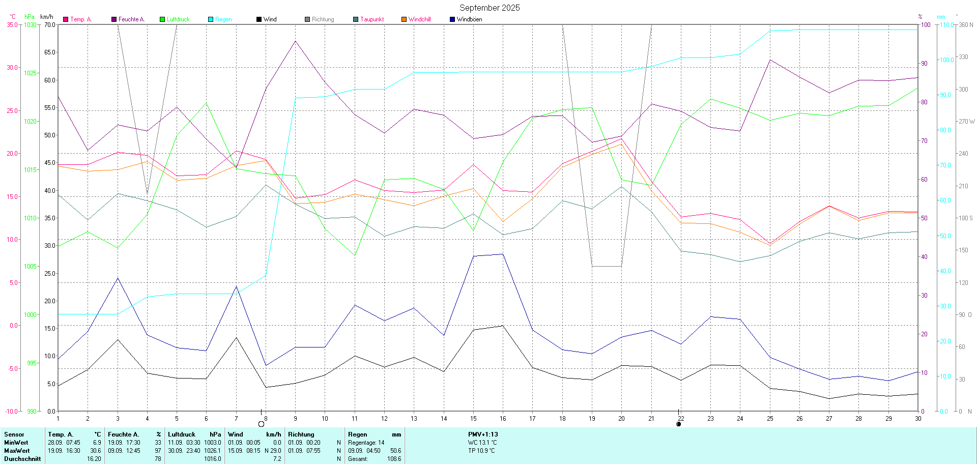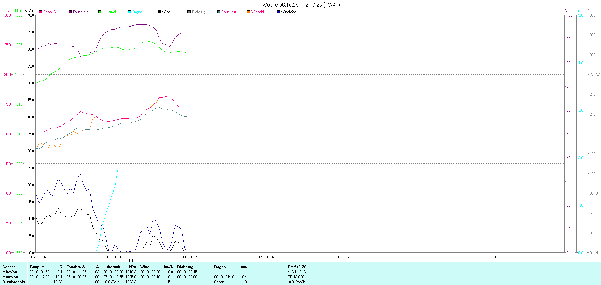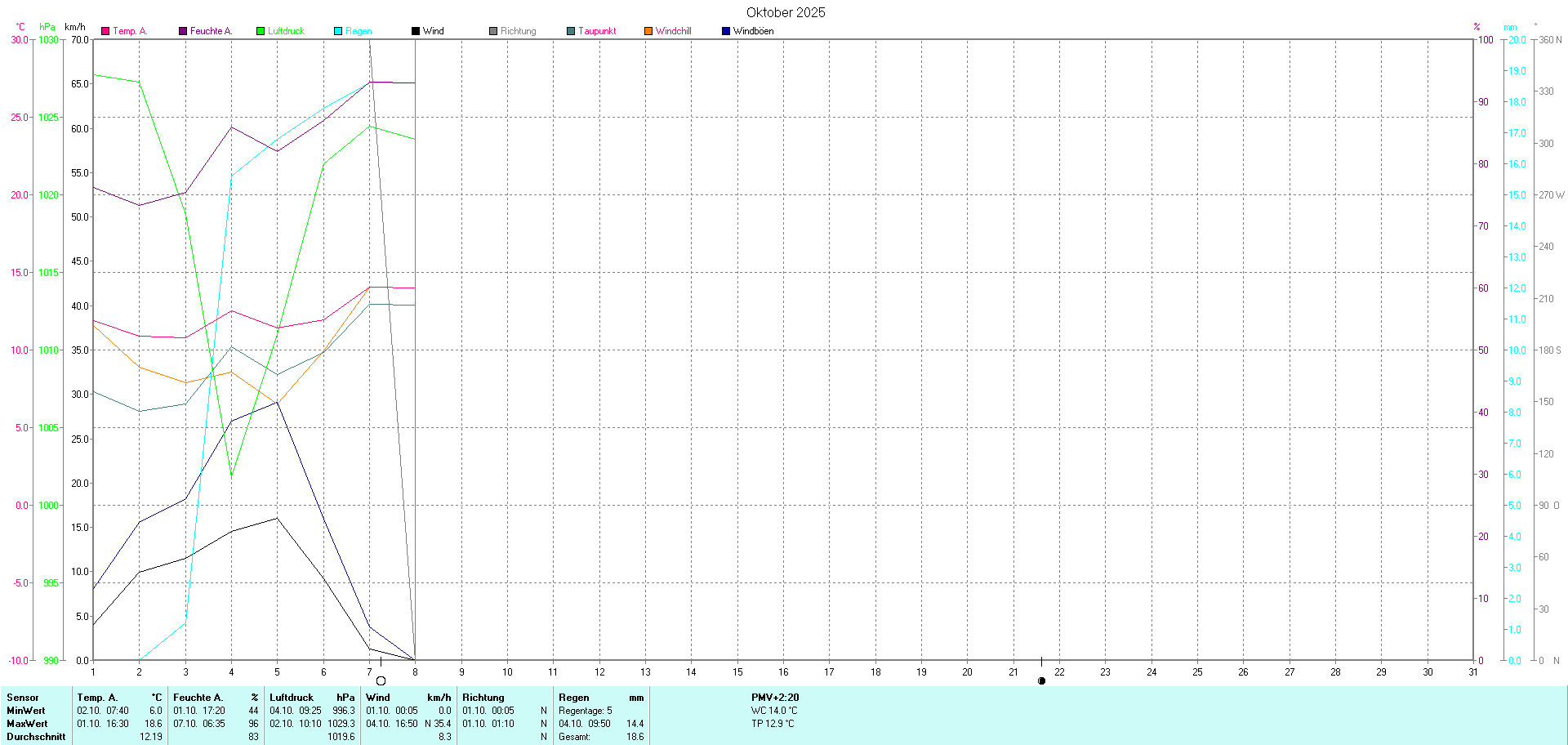 Die dargestellten Werte repräsentieren die Daten des aktuellen Tages! Der Luftdruck ist auf Meereshöhe bezogen! |